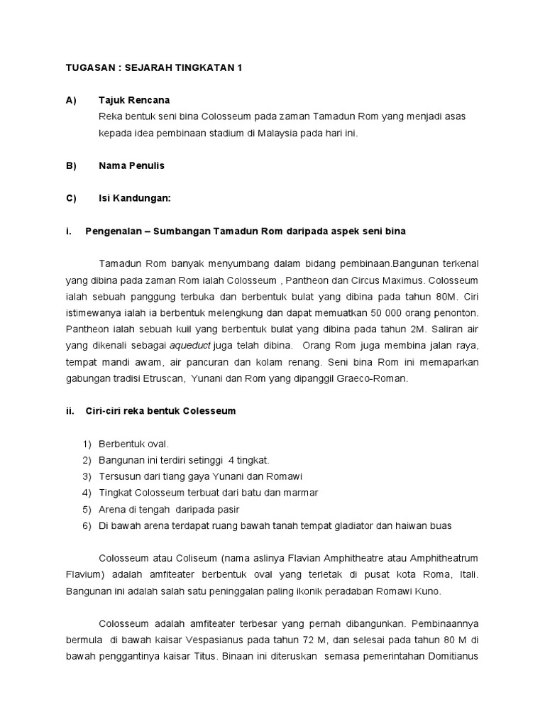 Menekankan aplikasi ilmu yang praktikal dan semangat setia kepada Rom. 54 KSSM SEJARAH TINGKATAN 1 Tugasan anda hendaklah mengandungi aspek berikut. F4 membina bangunan Colloseum.
